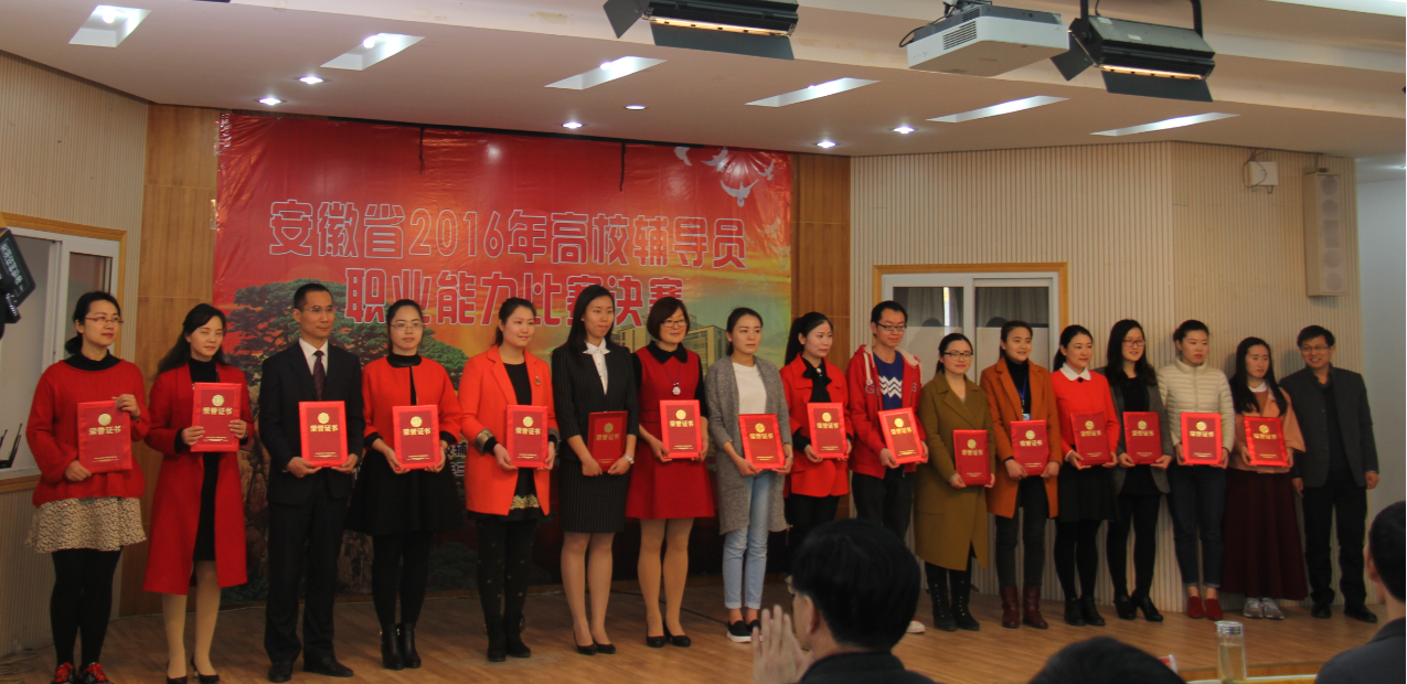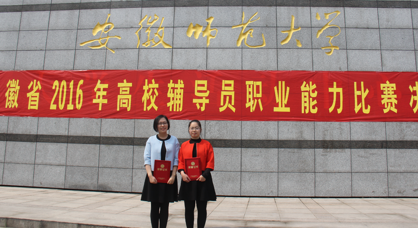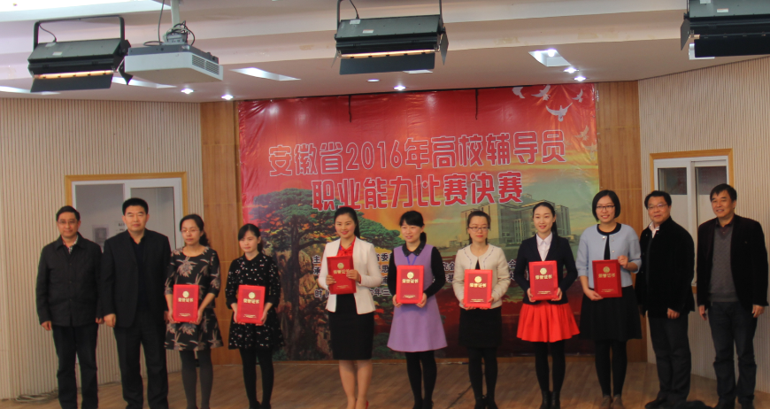 决赛由中共安徽省委教育工委主办,安徽省高校思想政治教育研究会辅导员研究分会、教育部高校辅导员培训和研修基地(芜湖)承办,共有来自皖南、合肥、皖北三个赛区的36名选手参加大赛,我校辅导员张旭念、马静静分别以合肥片区一、二等奖晋级决赛。