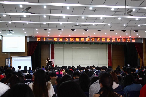 本网讯 3月30日,校第十一届“爱心家教”启动仪式暨教员培训会在欣苑4楼举办。校学工部(处)相关负责人、受教学生家长代表、新东方集团培训部负责人、校资助管理中心负责老师及400多名本届和往届的“爱心教员”参加了此次活动。