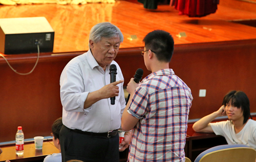 本网讯 5月4日晚,复旦大学教授倪世雄做客我校2016年第3期“神农大讲堂”,在我校图书馆第一报告厅和我校师生畅谈“中美关系最新走势”,为大家呈现了一场精彩的讲座。校学生处处长彭庆刚、国际交流合作处处长姜红,校团委副书记张健、任琪,思政部主任、人文社会科学学院党委副书记黄洪雷出席了本次讲座,校思政部部分老师、各学院团委老师及现场近600名师生一同聆听了这场讲座。