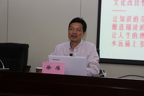 本网讯 5月5日晚,“时代书苑·青禾讲坛”迎来了第二讲,中国阅读学研究会会长、中国图书馆学会阅读推广委员会副主任、南京大学徐雁教授在图书馆第二学术报告厅为我校师生做了一场题为 “最是书香能致远”的读书报告会,200多名师生聆听了本次报告会,报告会由图书馆吴文革馆长主持。