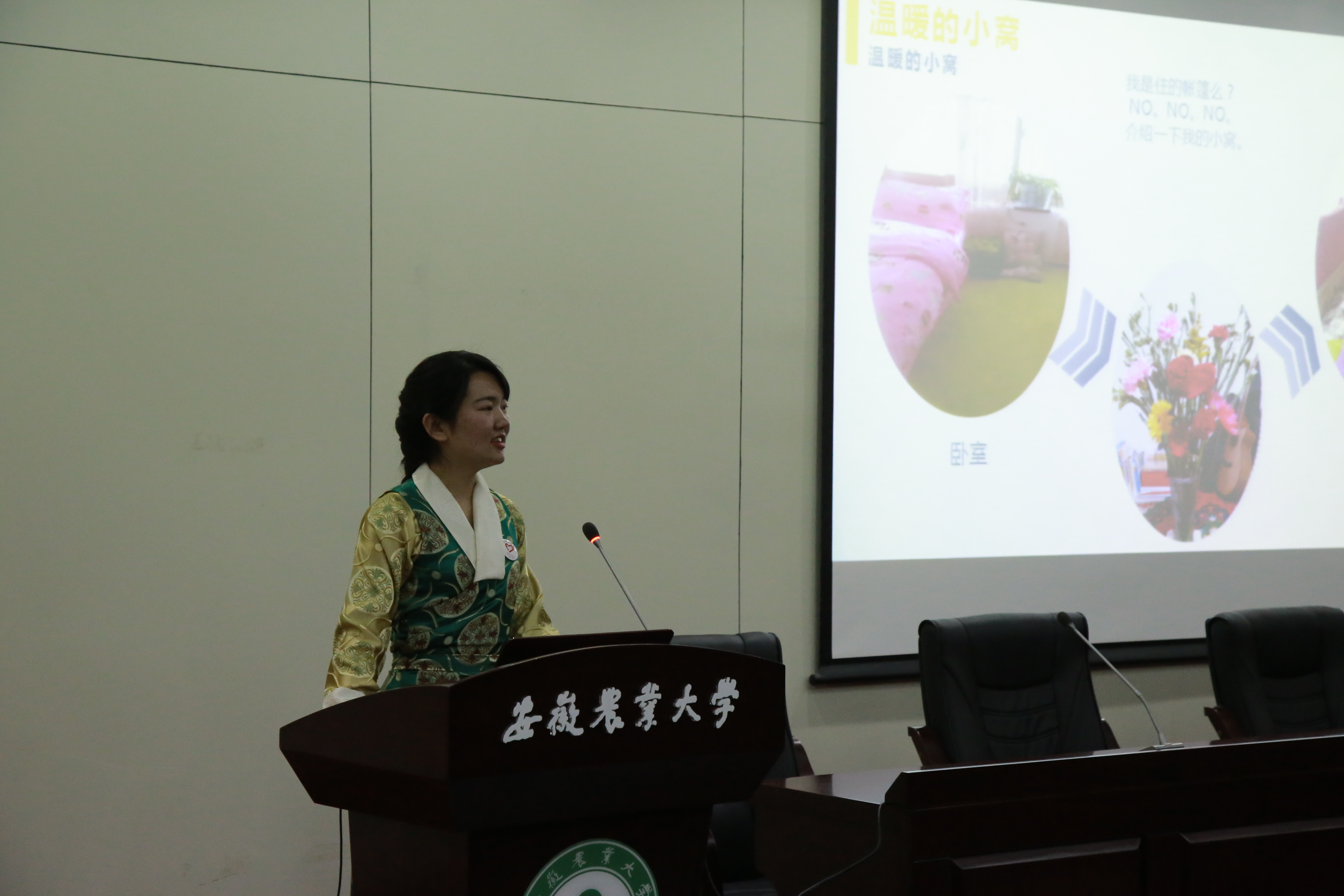 以“一次美丽西藏行,终身雪域高原情”为主题的报告会上,同学们首先集体观看了西藏独特的自然风光以及对援藏志愿者的专访短片。随后,西部计划优秀志愿者朝亚龙、王美玲、侯灿东、徐燕梅依次讲述了他们在志愿服务西部过程中的感人事迹和成长感悟。一张张照片诉说的是他们对青春梦想的执着坚守、一句句话语诠释的是他们对西部建设的真情奉献、一声声期待是他们对志愿精神的不懈追求,他们的勇敢、执着、坚韧、奉献和无私深深地打动了在场的每一位观众,会上不时地响起一阵阵热烈的掌声。