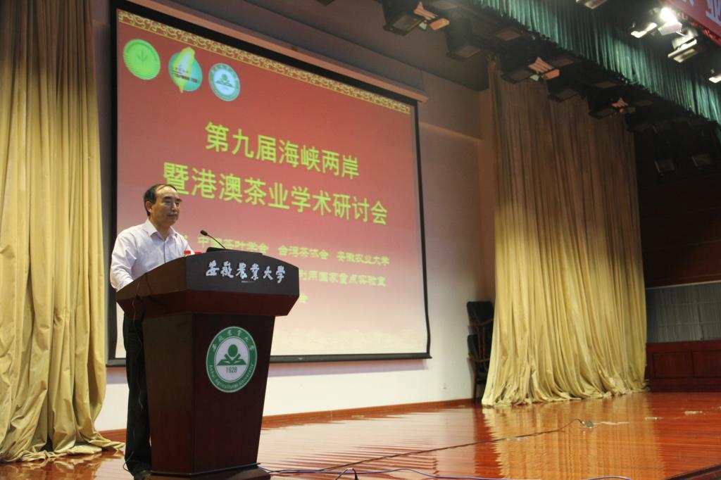 本网讯 由中国茶叶学会、台湾茶协会、安徽农业大学共同主办,我校茶树生物学与资源利用国家重点实验室和安徽省皖台交流协会承办的“第九届海峡两岸暨港澳茶业学术研讨会”,于6月15-16日在合肥成功举办。中国工程院院士陈宗懋研究员,中国茶叶学会理事长江用文研究员,台湾茶协会理事长林志城教授,中国科协交流部杨容处长,省台办张永主任,省农委周世其副主任,省科协王海彦副主席,我校党委书记宛晓春教授、校长程备久教授等出席开幕式并致辞。来自两岸四地的逾50家高校、科研院所、龙头企业共计300余人参加了此次研讨会。研讨会开幕式由安徽农业大学副校长姚佐文教授主持。