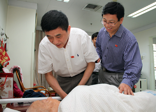 本网讯 7月1日上午,校领导宛晓春、李恩年、裴树东、姚佐文、蒋家平、韩军,在相关部门、学院负责同志陪同下,亲切看望慰问了我校部分老党员和困难党员张靖武、刘国风、胡承霖、宛志沪、张良富、吴祥安、余为一等。