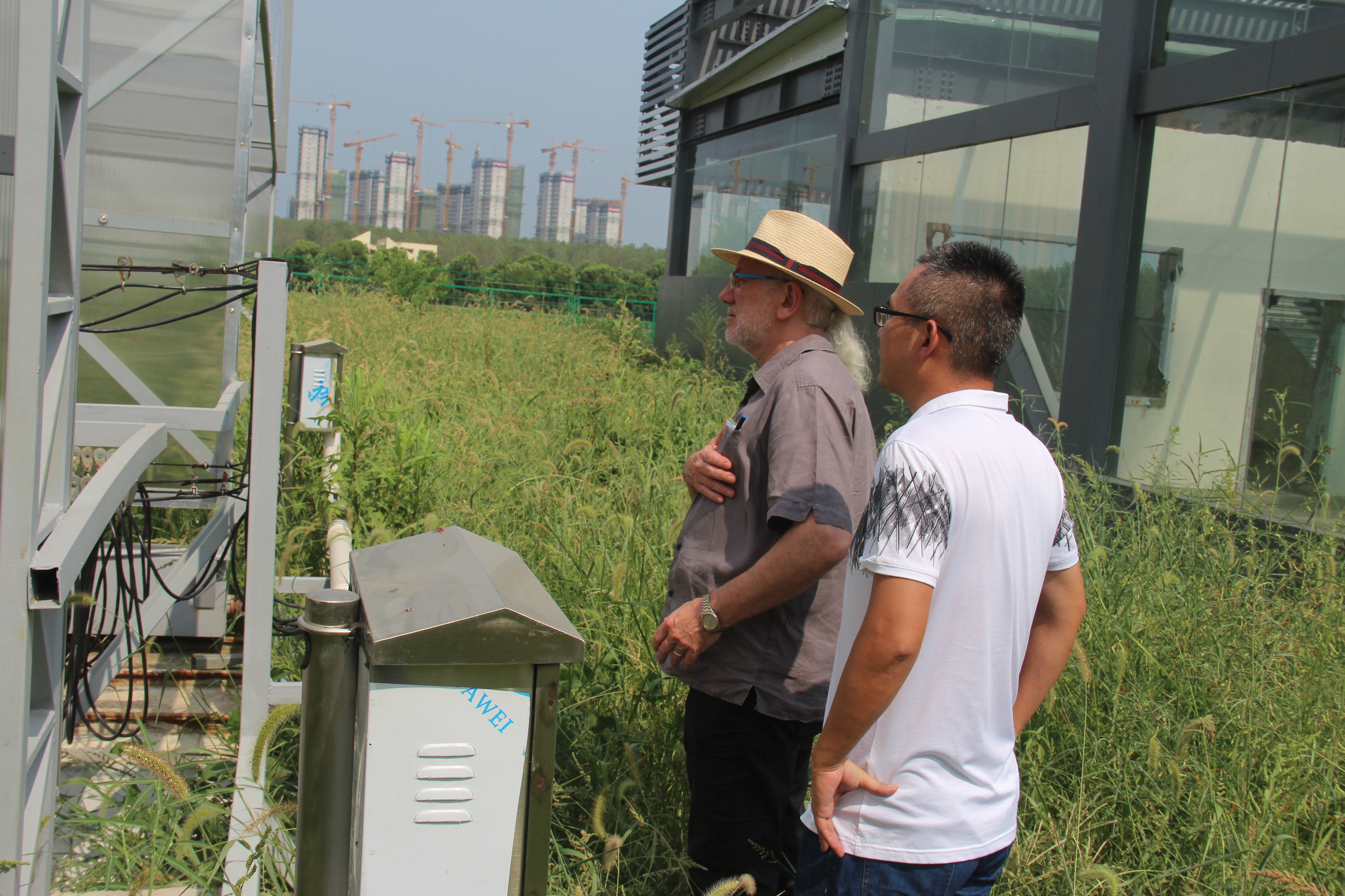 下午,农学院宋有洪教授陪同Hammer教授参观了我校大杨店农业科技园,Hammer教授对在建的风洞、雨棚和温室等实验室表示了浓厚的兴趣,对我们学校如此规模的科研设施平台给予了很高的评价。