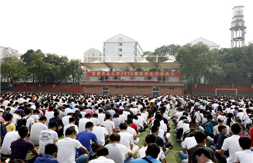 本网讯 9月7日上午,我校2016级本科生开学典礼在田径运动场举行。校领导宛晓春、程备久、夏涛、李恩年、裴树东、姚佐文、蒋家平、韩军出席大会,校直有关单位、各学院负责同志,各学院分管学生工作负责人,新生辅导员以及2016级全体新生参加大会。大会由校党委副书记李恩年主持。