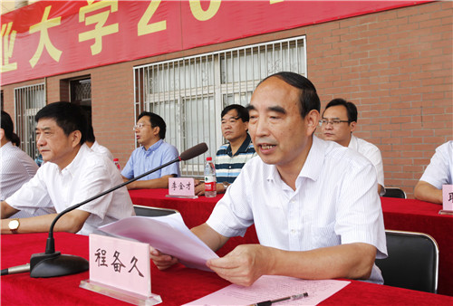 校长程备久代表学校对新生的到来表示热烈的欢迎,对养育他们成长、支持他们选择安农的父母和亲人表示衷心的感谢,并提前向全校教职工致以美好的节日祝福。他说,安徽农大是一所有底蕴的大学、一所有成就的大学、一所有担当的大学,作为一个安农人,应当牢记自己肩负的时代使命,要敢于担当,在发展现代农业、建设美好乡村、维护生态安全、服务扶贫攻坚方面,作出应有贡献。要善于担当,不仅要学习教学上、科研上的“有字之书”,更要多读生活、实践中的“无字之书”。要乐于担当,把“青春梦”、“三农梦”与“中国梦”融合起来,用正确的人生观引领人生路,弘扬“大别山道路”精神,吃得了苦头、耐得住寂寞、守得住平淡,锤炼品质、磨砺意志、彰显价值,让青春在服务“三农”的实践中熠熠生辉。