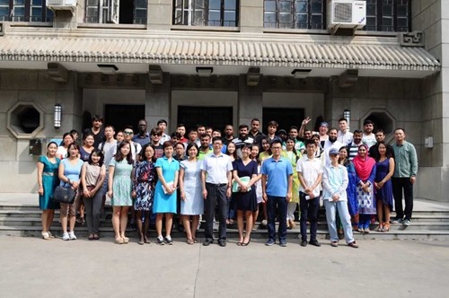 我校2015级车辆工程专业的越南留学生代表LE VAN DINH用流利的汉语分享了自己在我校一年来学习生活的经历,向新生们传授如何学习汉语的宝贵经验。来自茶学专业的孟加拉留学生MAJUNDAR TONU SREE 代表新生诚挚地感谢学校的关心帮助。会后全体人员在勤政楼下合影留念。