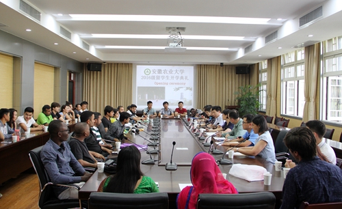 本网讯 9月9日上午9时,我校2016级留学生开学典礼在学校第三会议室隆重举行。副校长姚佐文出席仪式并致辞,国际教育学院全体工作人员、来自世界各地14个国家的留学生新生参加了开学典礼,整个会场座无虚席,气氛热烈。典礼上,副校长姚佐文向留学生新生们表达了诚挚的欢迎,并向留学生介绍了学校的历史发展历程以及在国际交流与合作、国际留学生教育的特色。同时,他希望广大留学生们认真学习汉语,主动融入新环境,融入农大生活。