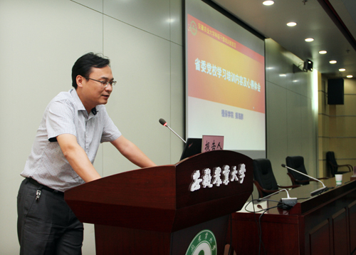 周旭同志交流了他参加国家教育行政学院高校中青年干部培训班的学习内容和思考,并要求广大科级干部要加强学习、强化历练、注重方法、积极乐观、自警自省、做好表率,为加快推进特色鲜明的高水平农业大学建设贡献智慧和力量。纪委副书记、纪委办主任、监察室主任、审计处处长韩平对《中国共产党廉洁自律准则》、《中国共产党纪律处分条例》、《中国共产党问责条例》进行了解读,结合具体案例分析,对科级干部加强廉洁自律提出了具体要求。