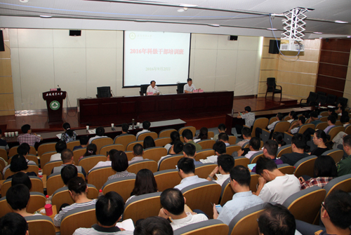 本网讯 9月25日,我校在图书馆第二报告厅举办为期一天的科级干部集中学习交流培训会。校党委副书记李恩年出席会议并做动员讲话。全校科级干部参加了培训会,培训会由校党委常委、组织部部长周旭同志主持。