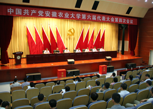 本网讯 9月28日下午,我校在图书馆第一报告厅召开六届四次党代会,选举我校出席省第十次党代会代表。校党委常委程备久、李恩年、裴树东、姚佐文、蒋家平、韩军、周旭出席会议并在主席台就坐。会议由校党委副书记李恩年主持。