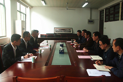 本网讯 4月21日,安徽青园集团董事长叶青一行4人来工学院交流合作,纪委书记裴树东、副校长姚佐文热情接待了客人。