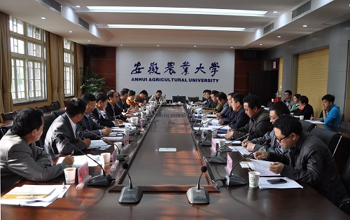 本网讯4月27日下午,安徽农业大学·定远县农业主导产业联盟工作座谈会在我校第三会议室召开。校长程备久出席会议,新农村发展研究院、各产业联盟首席专家、定远县一行10人参加了会议,会议由新农村发展研究院江淮分水岭综合试验站站长张子军主持。