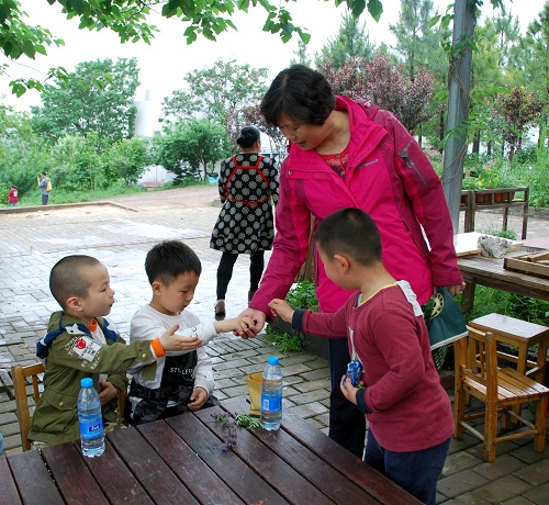 随后大家来到了铭传乡小团山香草农庄。雨后的小团山,法国薰衣草、鼠尾草、美人衣、白三叶、猫薄荷等各类香草竞相生长,生机盎然。大家游览了农庄,饶有兴味地在观赏中,认识了各色香草,了解了它们神奇的功用。午餐后,孩子们在家长的陪伴下走进茶舍,手工制作饼干;走进兔园,亲手饲喂兔子;走进桑林,采摘桑葚。场面热闹,气氛温馨,欢乐的笑声回荡在农庄上空。