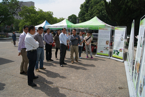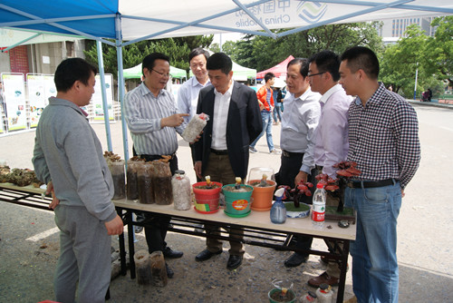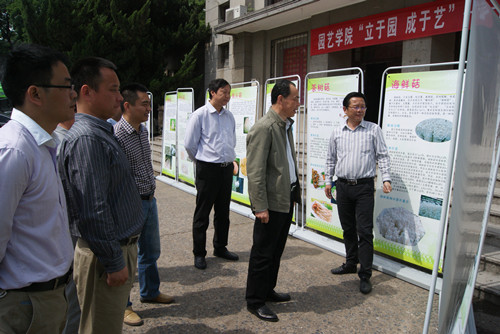 本网讯 5月18日,园艺学院“立于园,成于艺”园艺产品鉴赏会—食用菌专场在大礼堂广场举行。校领导宛晓春、夏涛、李恩年、裴树东分别在校办公室、纪委、教务处、学工部(处)、招生就业处、团委、园艺学院等单位负责同志陪同下到活动现场指导工作。