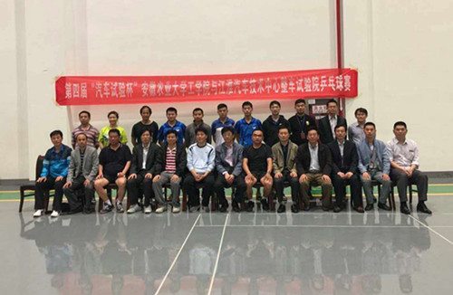 本网讯 5月21日下午,第四届“汽车试验杯”安徽农业大学工学院与江淮汽车技术中心整车试验开发研究院乒乓球赛在江淮汽车技术中心成功举办。校纪委书记裴树东、副校长韩军、工学院党政领导和江淮汽车技术中心党委书记戴刚、整车试验开发研究院院长汪旭明分别带队参加比赛。