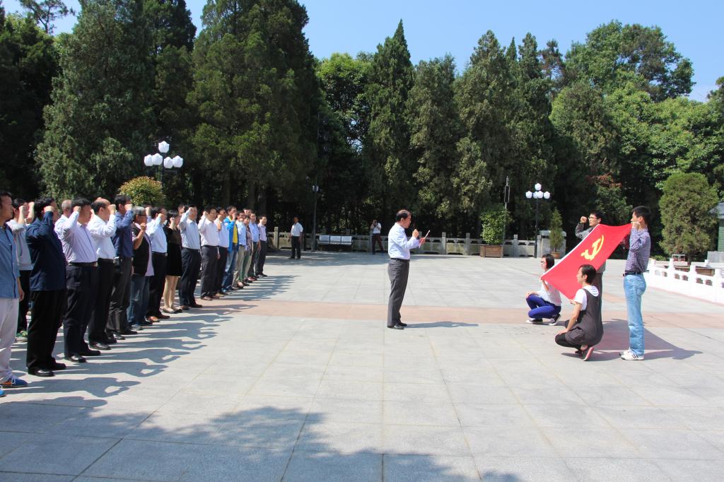 在金寨县红军广场,校党委副书记李恩年代表同行的78位同志向烈士陵墓敬献了花篮。接着,全体同志在烈士陵墓前面向党旗庄严宣誓:“我志愿加入中国共产党,拥护党的纲领,遵守党的章程,履行党员义务,执行党的决定,严守党的纪律,保守党的秘密,对党忠诚,积极工作,为共产主义奋斗终身,随时准备为党和人民牺牲一切,永不叛党。”