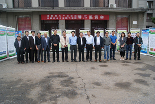 本网讯 5月28日,由安徽农业大学园艺学院与潘集酥瓜产业联盟共同主办的“潘集酥瓜鉴赏会”在我校顺利举行。淮南市委常委、潘集区区委书记蔡宜骅,校党委常委、副校长姚佐文分别在校办公室、新农村发展研究院、园艺学院等单位负责同志陪同下亲临鉴赏会现场指导工作。
