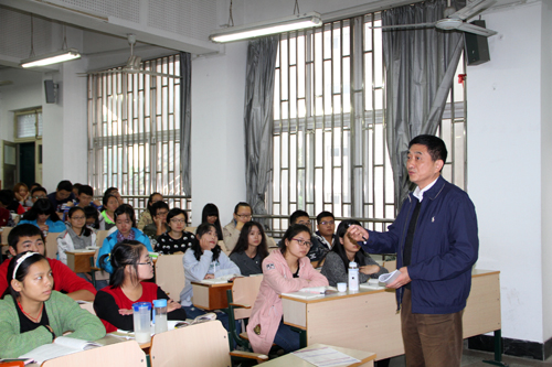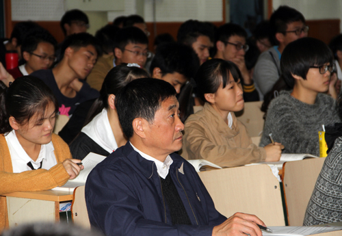 本网讯 10月14日下午,校党委书记宛晓春在副校长蒋家平、宣传部部长朱绍友的陪同下,来到勤学楼229教室,旁听了马克思主义学院老师讲授的《思想道德修养与法律基础》课程。