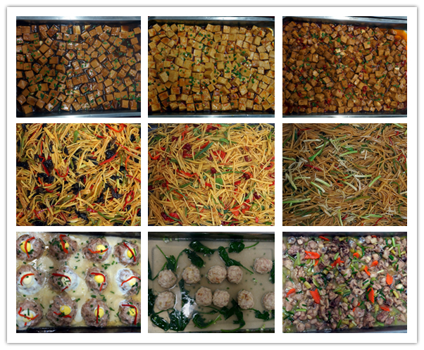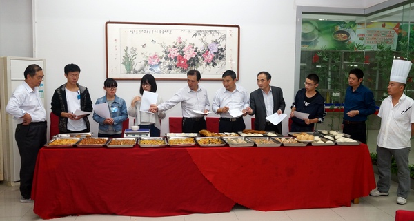 本网讯10月20日下午,后勤集团饮食中心结合“两学一做”学习教育,学用结合,在教工食堂举行了所属三个食堂大锅菜烹饪比赛,比赛内容分红案、白案两大类、六个品种的规定菜、创新菜等。本次比赛邀请了校工会、总务处、学生膳管会、专家担任评委,为了体现公平公正的原则,比赛采取不记名的参赛方式,评委们认真仔细地对照评分标准,通过“闻、看、品、形”对参赛品种认真打分,最终欣苑食堂获得大赛综合评分第一名。
