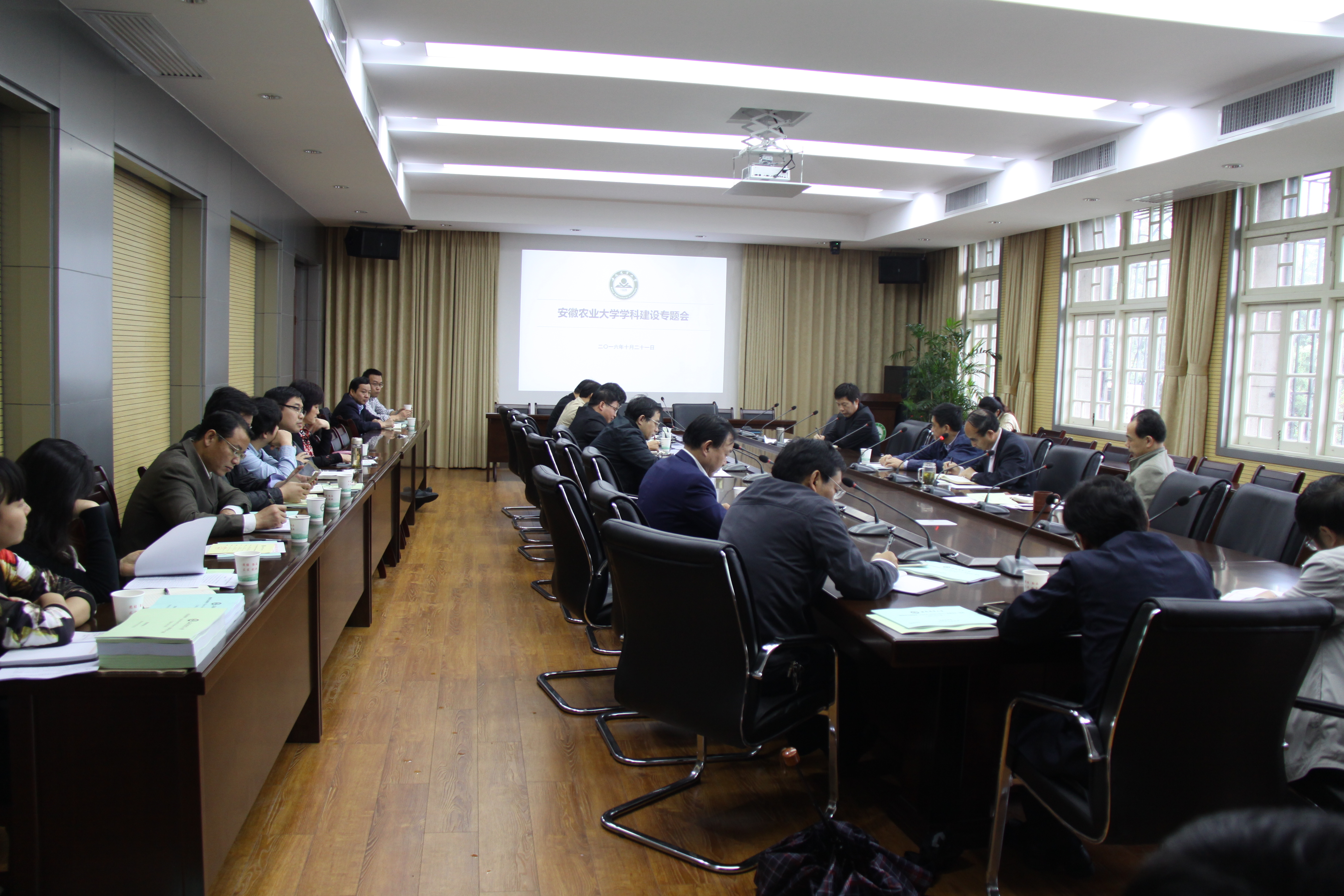 本网讯 10月21日,我校学科建设专题会在校第三会议室举行,校领导宛晓春、程备久、夏涛、姚佐文出席了会议。发规处、人事处、科技处、新农院、研究生处、生物技术中心、图书馆等职能部门负责人,省部级以上平台(含重点实验室、工程技术中心)负责人,部分学院院长及分管学科、科研的副院长,学科负责人,全校各博士点学科负责人参加了会议。会议由校长程备久主持。