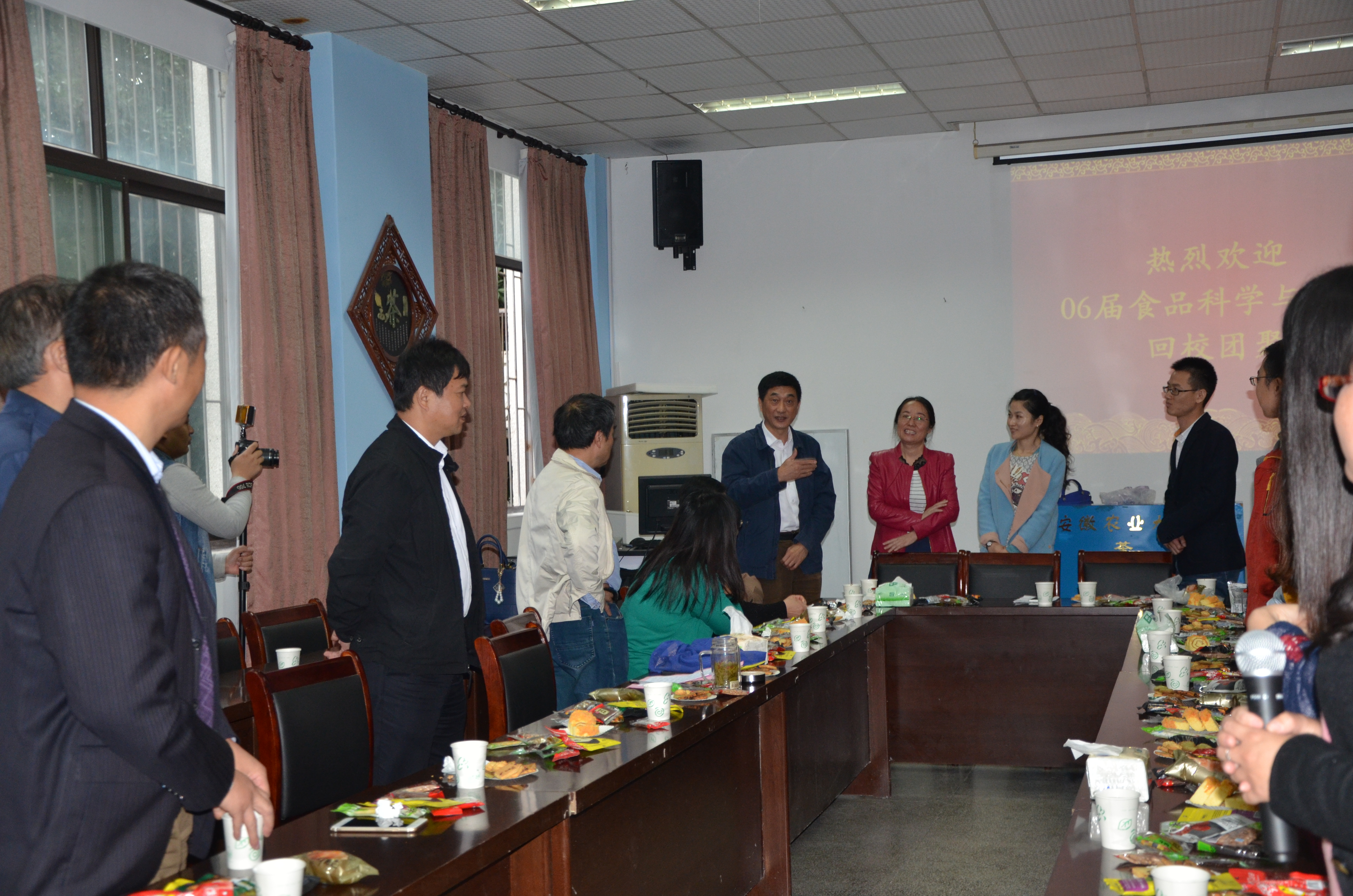 本网讯 弹指一挥十载,浓浓师情无限。10月23日上午,茶食学院2002级食品科学与工程专业毕业10周年回母校团聚,校党委书记宛晓春教授及院党政领导、在校任课老师等参与座谈,座谈会由时任班主任、校团委副书记任琪主持。