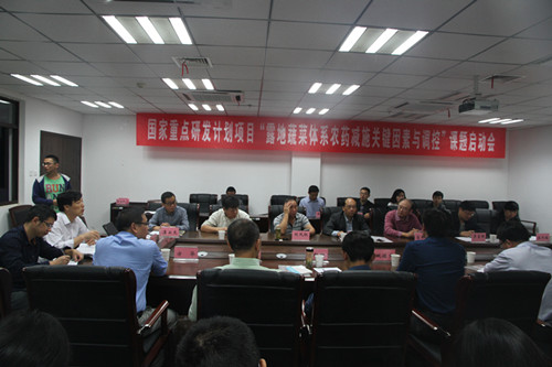 本网讯10月20-21日,由我校花日茂教授承担的国家重点研发计划项目“露地蔬菜体系农药减施关键因素与调控”课题启动会在我校生物科技楼举行。来自中国农科院植保所、中国农科院蔬菜花卉所、中国农业大学、农业部农药检定所、浙江大学、江苏农科院、美国密歇根州立大学等单位的领导和专家出席了课题启动会,我校副校长姚佐文出席并致辞,科技处、浙江大学、中国农科院质标所、中国农科院蔬菜花卉所、湖南农科院植保所等各子课题负责人参加了会议。
