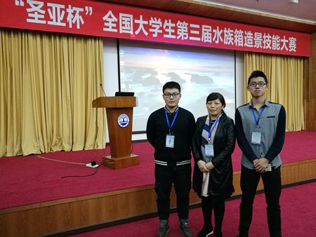 本网讯 10月21-23日,由教育部高校教学指导委员会和国家级实验教学示范中心联席会共同主办的“全国大学生第三届水族箱造景技能大赛”决赛在大连海洋大学进行,由我院丁淑荃和孙伟老师指导的作品《菩提一悟》和《痕》两件作品入围决赛并表现优异,在全国参赛的110支作品中脱颖而出,双双荣获本届大赛二等奖。