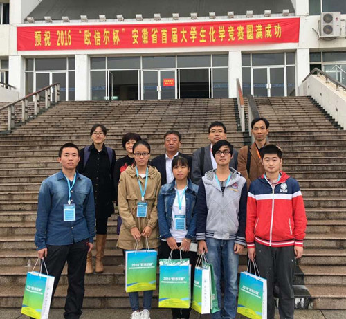 本网讯 10月14-16日,“安徽省首届普通高等学校大学生化学竞赛”决赛在安徽师范大学成功举办。我校选派的应用化学专业5名参赛同学及指导老师由理学院党委书记张俊武、副院长张袖丽带队,在比赛中取得了一个特等奖、两个一等奖、一个二等奖和一个三等奖的优异成绩,同时获得一个优秀指导教师奖,总成绩在各参赛高校中名列前茅。