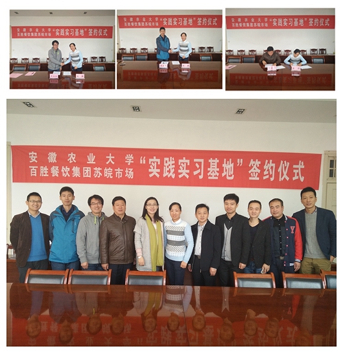 本网讯 11月3日上午,由校学工部(处)组织的“安徽农业大学——百胜餐饮集团苏皖市场联合建立实践实习基地”合作签约仪式在勤政楼第一会议室举行。百胜餐饮集团苏皖市场南京肯德基有限公司营运经理姜漪、公共事务部副经理宁向上、人事部招聘经理张琨等一行来校洽谈。校学生资助管理中心主任兼学生处副处长刘柳及经济管理学院、外国语学院、园艺学院等学院分管学生工作负责人参加了仪式。