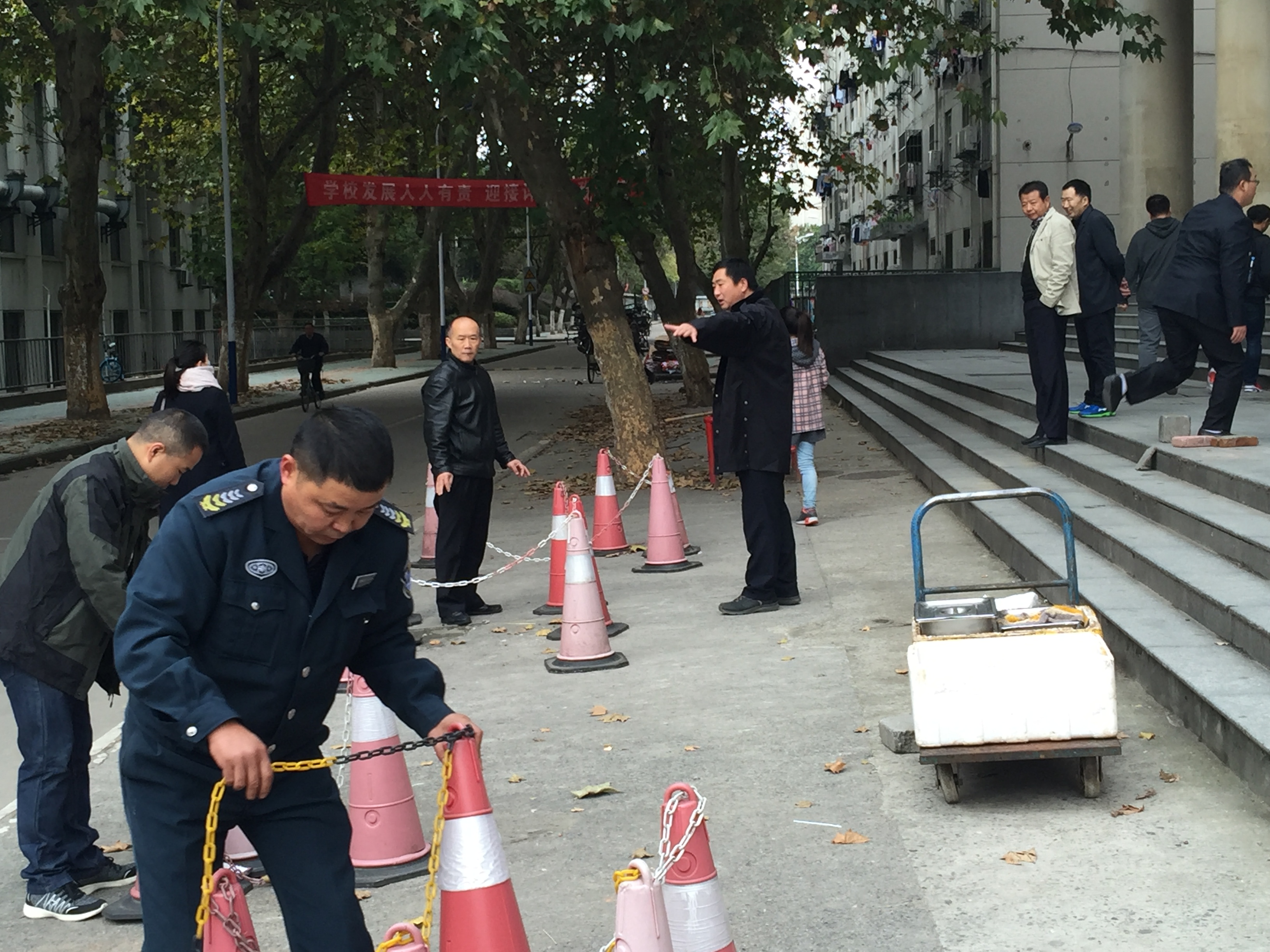 本网讯 散乱无序停放的校园非机动车辆及长期 “沉睡”积存的“僵尸车”不仅是影响和谐校园环境的“毒瘤”,更是威胁校园安全的重大交通隐患。为进一步完善“平安校园”建设长效机制,保卫处以坚决落实省委巡视组整改要求为导向,以迎接本科教学审核评估为契机,以“三车”安全专项整治为抓手,11月9日,全处人员在处长涂德润、副处长翟保庭、宋齐的带领下,重点对学校东大门违规停放的非机动车辆进行了集中整治。