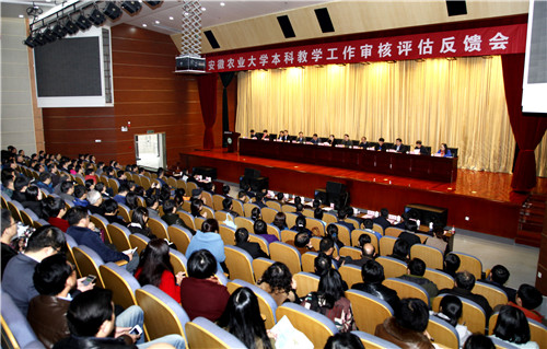 本网讯 11月17日下午,安徽农业大学本科教学工作审核评估反馈会在校图书馆第一报告厅举行,会议由专家组组长、华中农业大学副校长吴平主持。安徽省教育厅副厅长(正厅级)李和平,省教育厅高教处副处长梁祥君,教育部专家组全体成员出席会议,全体校领导,校教学督导组成员,各学院(部)、机关各部门、校直各单位副处级以上人员以及部分师生代表参加了会议。