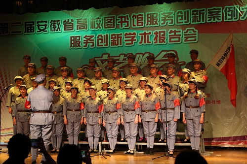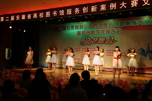 大赛期间还举办了第二届安徽省高校图书馆服务创新案例大赛文艺晚会,本次晚会由安徽农业大学图书馆主办,中国科学技术大学图书馆、安徽大学图书馆、安徽医科大学图书馆、安徽警官职业学校图书馆、合肥幼儿师范高等专科学校图书馆、桐城师范高等专科学校图书馆、阜阳职业技术学院图书馆协办,安徽农业大学图书馆学生服务中心承办。晚会紧扣本次大赛主题“服务推动转型,创新驱动发展”,分为“经典致敬,古韵永存”、“驻足当下,美好共享”、“展望未来,共绘蓝图”三个篇章,结合各高校图书馆服务特色,兼顾古典风与时尚感,用充满灵气的表演展现了我省各高校图书馆的精神风采,更寄托了省内高校图书馆同仁们对未来的美好憧憬。