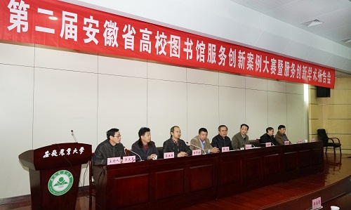本网讯 11月25日—26日,第二届安徽省高校图书馆服务创新案例大赛决赛暨服务创新学术报告会在安徽农业大学图书馆第二学术报告厅举行,本次大赛由安徽省高等学校图书情报工作委员会主办,安徽农业大学图书馆承办,中国科学技术大学图书馆、合肥工业大学图书馆、安徽大学图书馆、安徽师范大学图书馆协办。安徽农业大学蒋家平副校长、安徽省教育厅高等教育处徐海洋主任,安徽省高等学校图书情报工作委员会储节旺秘书长出席大赛开幕式并致辞,校图书馆吴文革馆长主持本次大赛。全省40多所高校图书馆馆长、专家、老师以及公共图书馆馆长、专家约150人齐聚一堂,合作交流,共谋图书馆创新发展之策。