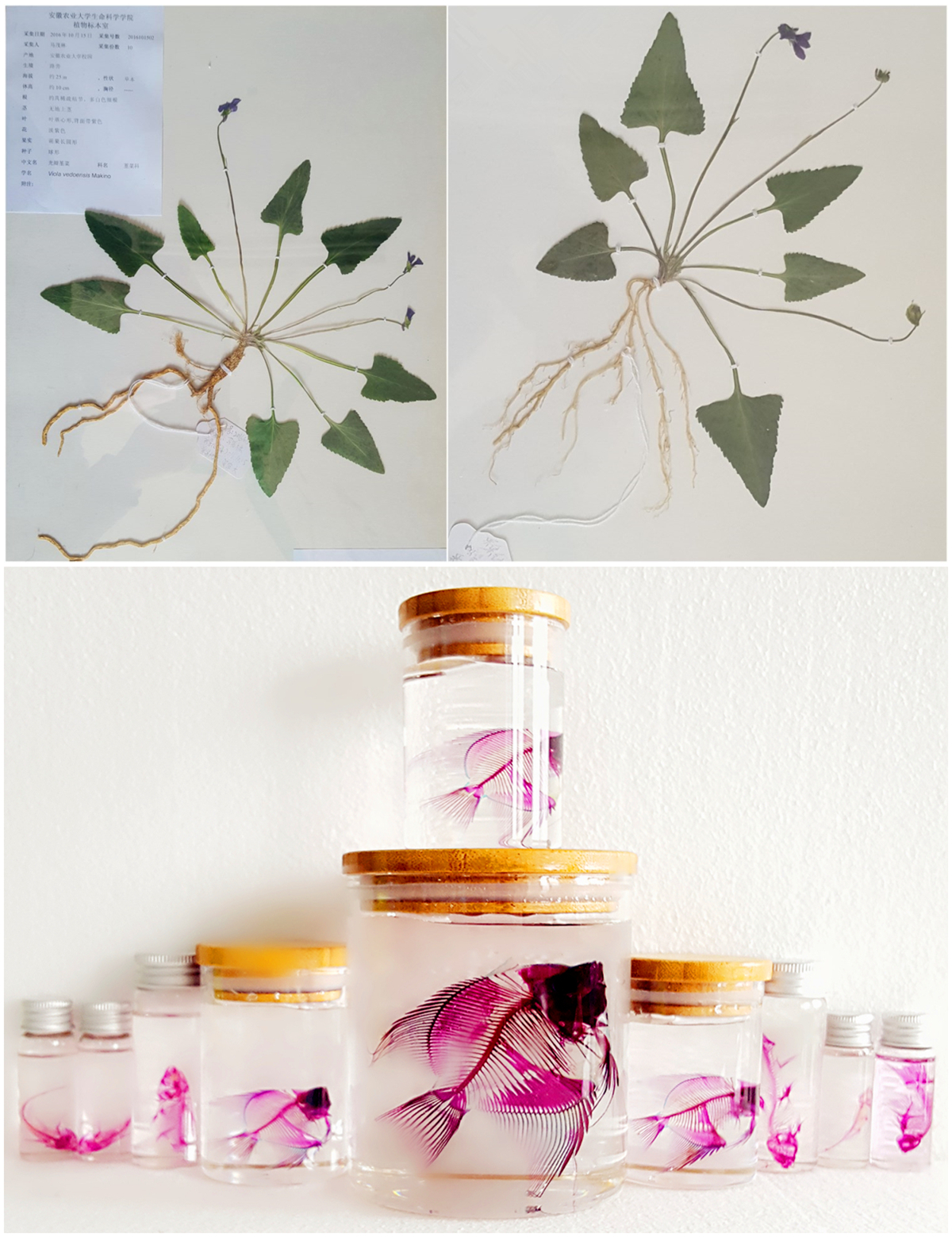 据悉,安徽省大学生生物标本制作大赛已连续举办过两届,今年该项赛事被安徽省教育厅正式确立为省大学生学科和技能竞赛项目。本次大赛共吸引了来自全省27所高校共计181件作品参赛,比赛规模高、参赛队伍多,优秀作品层出不穷,竞争激烈,评委们从每件作品的命题与创意、设计与制作、专业性、观赏性、难度系数及创新性等方面进行全面评价,经过激烈角逐,学院黄玉萍等3位同学的“堇色年华”、马雪等3位同学的“富棣棠皇”、李欣等4位同学的“草木樨”作品分获植物制作组一、二、三等奖;武雨葶等8位同学的“龙凤呈祥”、于星杰等4位同学的“五花爨弄”、包钰等5位同学的“以叶知徽”作品分获创新创意组一、二、三等奖;杨浩等3位同学的“绚丽透明鱼骨骼标本”获得动物制作组三等奖。