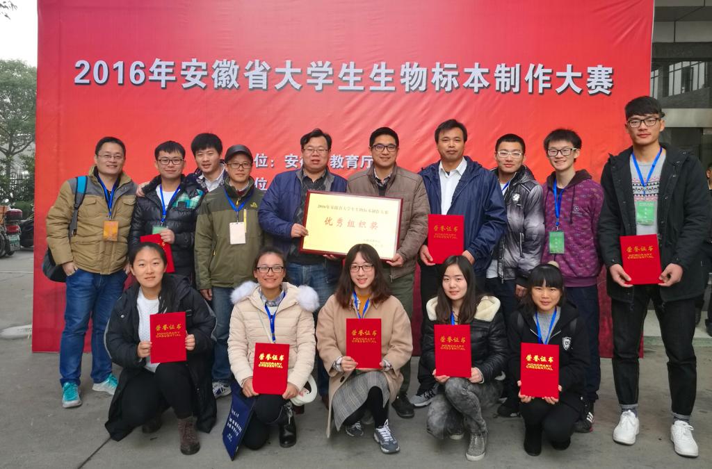 本网讯 由安徽省教育厅主办的安徽省第三届大学生生物标本制作大赛决赛于11月26日在安庆师范大学举行。我校生命科学学院代表学校选送的参赛作品分别获得一等奖两项、二等奖两项、三等奖三项的佳绩,总成绩在各参赛单位中位居前列。田胜尼老师、叶爱华老师被评为优秀指导老师。学校获得优秀组织奖。比赛期间,学院党政领导前往比赛现场观看并指导学生参赛。