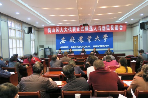 本网讯 根据蜀山区人大换届选举工作委员会统一部署,我校片区代表选举分为第八、第九两个选区进行。12月5日下午,学校在第二会议室召开蜀山区片区人大代表正式候选人与选民见面会暨推选工作布置会。校党委副书记李恩年同志出席会议。琥珀街道负责同志、两个选区负责同志、片区代表正式候选人、二级党组织负责人及选民代表参加会议。会议由校党委常委、组织部部长周旭同志主持。