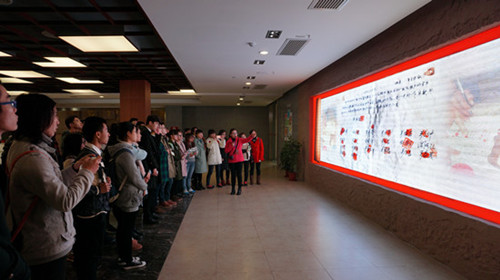 在安徽博物院,师生们徜徉在史前、夏商周、汉魏晋、隋唐和元明清等不同时期的安徽历史文化长河中,不禁为祖先的聪明才智所叹服。在“飘扬的红旗——纪念长征胜利80周年主题展”上,面对一块块展框,感受着长征中安徽籍红军将士的英勇事迹,师生们敬佩之情油然而生,无不为有这样的红军将士感到自豪。同学们表示,所见所闻,是我们从书本里所学不到的。