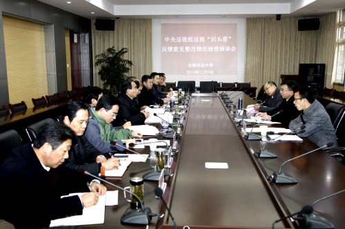 王后林同志在会上传达了省委巡视整改工作领导小组第13次会议精神,介绍了开展抽查工作的重要意义和具体要求。在听取我校党委工作汇报后,他充分肯定了我校中央巡视组巡视“回头看”反馈意见整改工作。他认为,我校巡视整改问题查找准确,制定的整改方案详细具体、切实可行,整改工作有特色、有亮点,整改任务落实到位、成效显著,总结材料准备充分、内容充实。他希望学校党委抓好持续巡视整改工作,全面贯彻落实全国高校思想政治工作会议精神,在强化制度建设、加强基层党组织建设以及“管党治党宽松软”专项治理上下功夫,将巡视整改融入到学校办学各项进程中,促进学校事业科学发展。