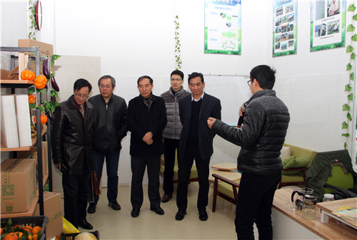 会后,检查组一行到校大学生创客空间、图书馆以及生物科技楼进行了现场考察。