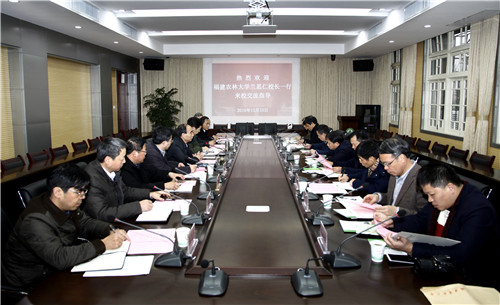 本网讯 12月13-14日,福建农林大学校长兰思仁、副校长黄炎,率党委(校)办公室、人才办、发展规划处、新农村发展研究院、科教基地管理中心等单位负责同志来校考察交流。党委书记宛晓春、校长程备久、副校长姚佐文热情接待了兰思仁校长一行。