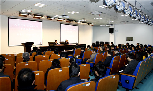 兰思仁校长还应邀为我校学院党政主要负责人、机关副处以上干部作了《人才引进与队伍建设》的专题辅导报告。校长程备久主持报告会。报告会前,兰思仁校长一行参观了生物科技楼、图书馆以及新农院远程服务中心。(校办)