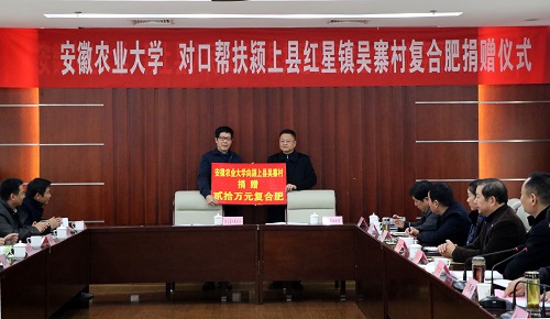针对省委、省政府“单位包村,干部包户”的号召,我校积极响应,并与对口帮扶的颍上县红星镇吴寨村13位贫困户开展了“一对一”结对帮扶,不但分别为贫困户捐赠了慰问金,这次又捐赠了价值贰拾万元的复合肥,为贫困户开展农业生产提供保障。(张宪林 通讯员:姚洪章)