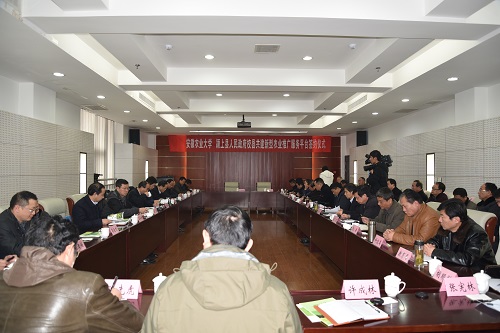 程备久强调,建设好这一新型推广服务平台要抓住三个着力点,一是“新”。要创新发展理念,围绕颍上县现代生态农业发展的需要开展工作,要创新发展模式,以种养结合形成网络园区和循环发展的生态模式,要创新机制,实现校县融合发展,协同发展。二是“实”。要总体规划,分步实施,落实各项工作,形成可复制,可推广的推广服务模式。三是“效”。要高效推动,加快建设,要有成效,每年要有进展,要在推动产业扶贫和产业转型升级上起到实效。