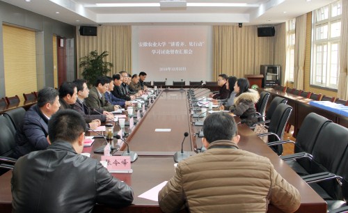 本网讯 12月22日下午,以安徽省委讲师团副团长肖文婷为组长的省“讲看齐、见行动”学习讨论督查组一行来我校督查“讲看齐、见行动”学习讨论开展情况,校领导宛晓春、李恩年、裴树东、蒋家平出席会议,部分校直单位主要负责同志以及学院党委书记参加会议,校党委书记宛晓春主持会议。