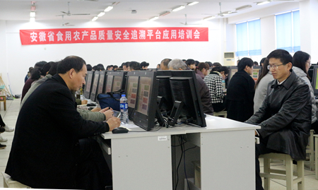 来自安徽省农业生态环保与质量安全产业技术体系的溯源技术团队的成员从安徽省食用农产品质量安全溯源体系建设的背景、目标,平台建设框架和建设内容,以及与农业部的国家级平台对接和市、县、企业系统与省级平台对接进行了介绍,并进行了现场培训和技术交流。