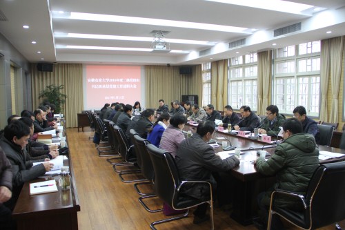 本网讯 1月11日上午,我校在校第三会议室召开2016年度二级党组织书记抓基层党建工作述职会,校领导程备久、夏涛、李恩年、裴树东、姚佐文、蒋家平、韩军出席会议,省委教育工委组干处副调研员戴晓江同志到会指导,全校25个二级党组织书记、民主党派负责人、教代会执委和教师代表、学生代表参加了会议。述职会由校党委副书记、校长程备久同志主持。