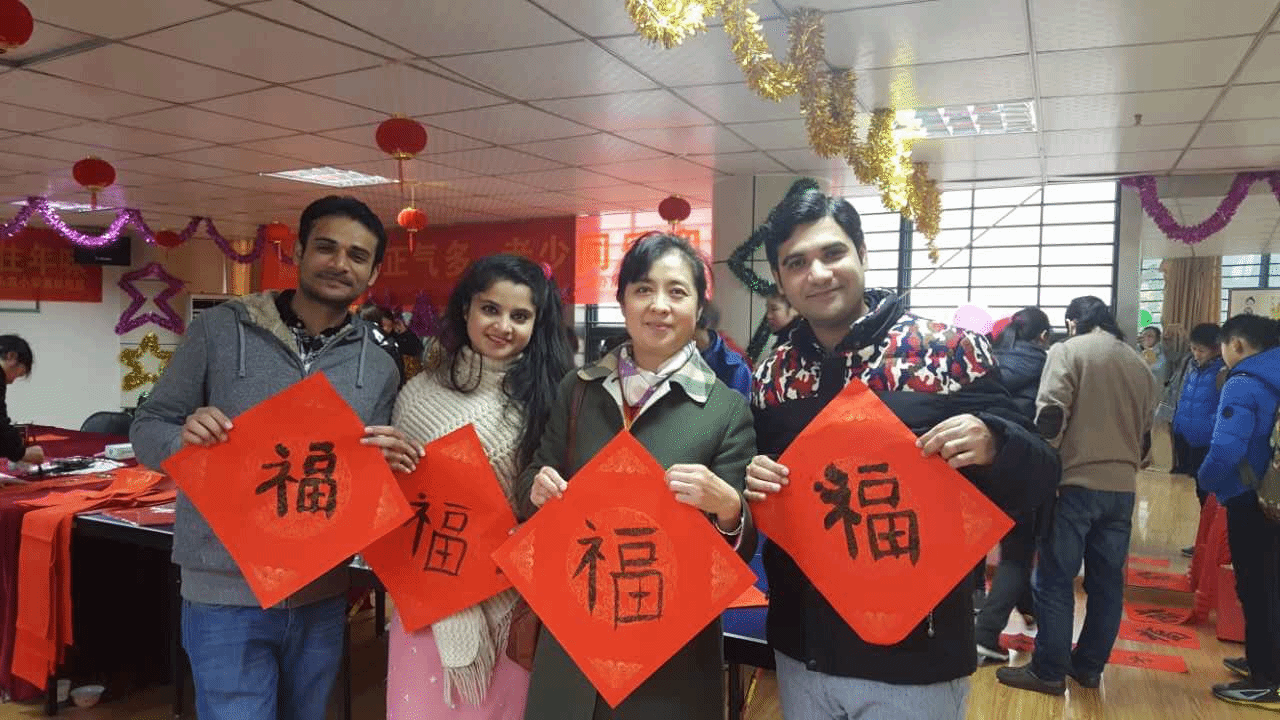 寒假期间,共有约80名留学生在学校学习生活。国际教育学院高度重视来华留学生教育服务工作,安排留学生参加了一系列文化活动。1月21日学院组织部分留学生参加了琥珀街道的新春茶话会,并参加了学写春联的活动。1月26日,学院为留学生们发放了春联、窗花、福字,并介绍相关节日文化,受到留学生的欢迎。老师们与留学生共同为学院留学生接待室张贴了春联。