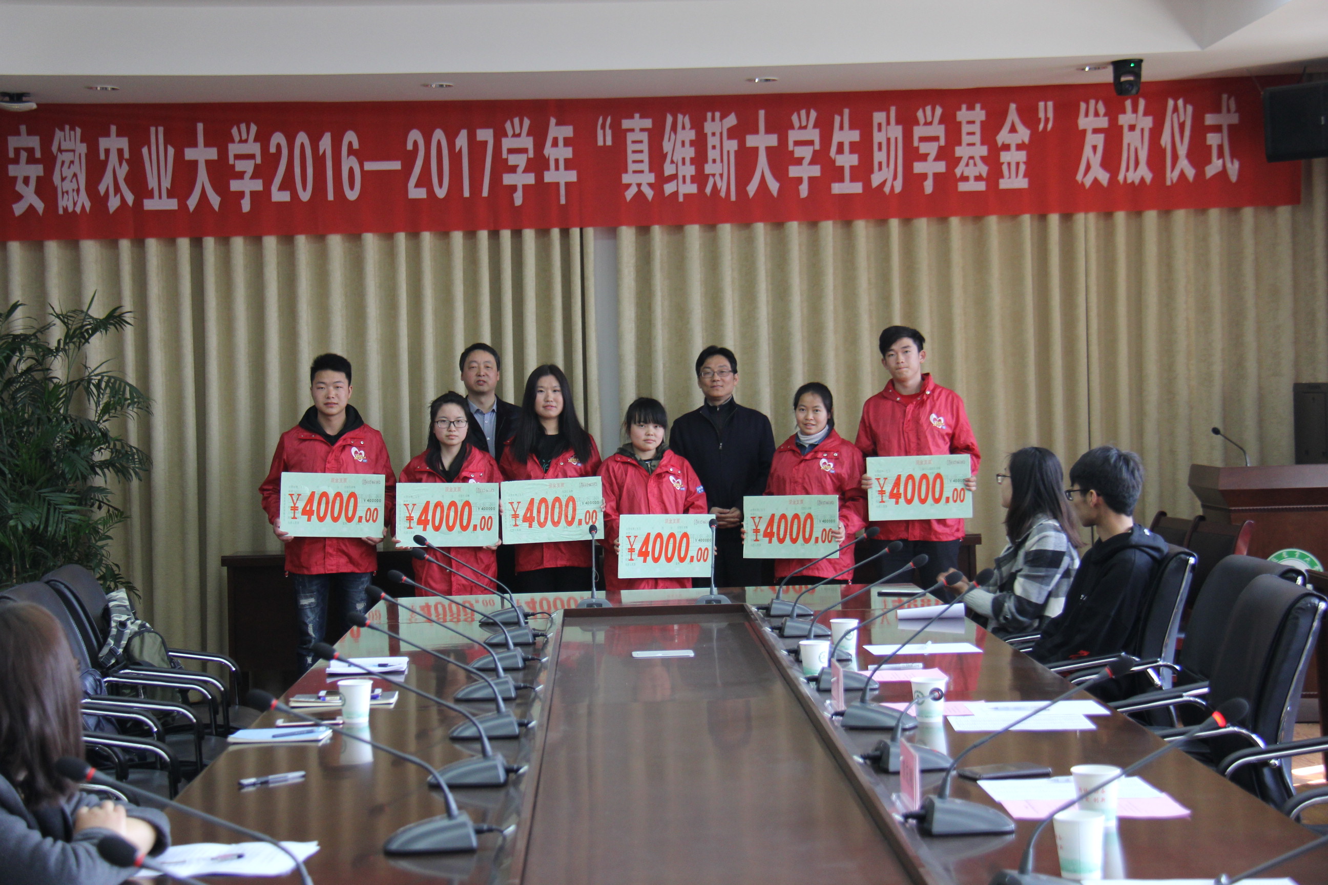 本网讯3月8日下午,校资助管理中心在勤政楼第三会议室举行2016-2017学年“真维斯大学生助学基金”发放仪式。安徽省青少年发展基金会理事长、安徽省希望工程办公室主任曹勇,校学工部(处)部(处)长彭庆刚、资助管理中心负责老师及获得“真维斯大学生助学基金”的学生参加仪式。