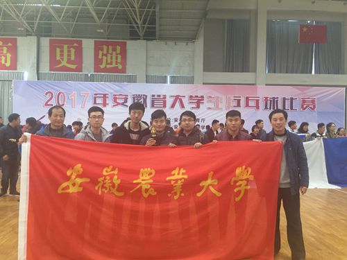 本次赛事属于《2017年安徽省高校体育竞赛计划》一部分,旨在贯彻落实安徽省人民政府办公厅《关于强化学校体育促进学生身心健康全面发展的实施意见》,推动我省高校体育工作健康快速发展。大赛设男子单打、女子单打、及男、女团体等六个竞赛项目,采用国家体育总局审定的最新《乒乓球竞赛规则》和单循环比赛办法。安农大乒乓球队在陶庆、鲁雨生两位老师的指导下,发扬勇敢拼搏、顽强战斗的精神,克服种种困难,最终获得本次大赛男子团体冠军、女子团体三等奖、男子单打和女子单打三等奖。